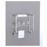 Organize It All 16988W-1 2 Tier Wall Mounted Rack with Towel Bars. Save valuable counter space in your bathroom with the Neu Home Metro 2-Tier Towel Rack. Use the shelves to neatly organize your bathroom essentials and keep your shampoo and makeup where it belongs. The bathroom rack comes with two towel bars for added convenience and additional storage space. It is made from durable metal in a sleek chrome finish, which makes it long-lasting and able to withstand dampness. This wall mount towel rack with towel bars also helps to tie your bathroom decor together. With it's simple and attractive design, it makes an ideal piece for nearly any scheme. Item is in original retail package. Assembly required. NEW! Retails for $25.49 |