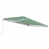 ALEKO Retractable 13' x 10' (4m x 3m) Patio Awning, Green and White. Requires no electricity. Opens and closes easily in less than a minute. Excellent sun and rain protection. Terrific value! Length: 13’ Width: 10’ Weight: 110 lb. Item is in original retail packaging. ***Minor box damage noted. Retails for $569.67 <94> |