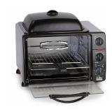 Elite Platinum Black Griddle Top Toaster Oven. 20" x 16" x 14". Consistent heating up to 450° and 1500-Watt of power make this toaster oven the ultimate powerhouse. Healthy rotisserie cooking for delicious poultry or roasts. Depth capacity to bake a 12-in. frozen pizza. Has oven-top nonstick grill & griddle with dome lid. Item is in original retail package. NEW! Retails for $52.99 |
