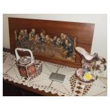 Here is a sample list: French provincial furniture with dark wood Glass top caned coffee table Maple end tables French style dark wood display cabinets Floral mirror Wood / marble plant stands Dark walnut sideboard vintage Oil paintings Formal dining set with 6 chairs and 1 leaf Matching china cabinet Oak chairs Religious motif Carnival Glass Fire King dishware Capodimonte glassware Noritake China Silver plate items Stoneware dishware Vintage stereo system Last Supper plaques Microwave stand Mirrored / marble hall tree Oak dining table with 4 chairs one leaf Whirlpool double door refrigerator Full kitchen Knifewear Solid brass squirrels Lots of kitchen accessories GE side-by-side refrigerator Kitchenette set Electric stove Ultrex toaster oven Showtime rotisserie Decorative cookie jars Capodimonte clock Bird's-eye maple display case Lots of crystal glassware Camere wall clock Highboy dresser Lowboy dresser with mirror TV cabinets Roll top desk Child's rocking chair Queen bed with post Matching side tables Brother portable sewing machine model LS 2000 Viking Husqvarna Serger Machine Singer portable machine Large paper shredder Sewing machine table Lots of sewing notions Mini decorative items Statue of Jesus Cabrio whirlpool washer Kenmore dryer Cedar Chest Vintage upholstered armchair Tufted easy chair Double bed Bedroom easy chair Tall display case Single child's bed Portable desk Children's stuffed animals Children's desk Office chair Redwood chest Marble top office desk File cabinet Double bed set Lowboy dresser with folding mirrors Christmas Nutcracker Crucifixes Angel items Reproduction vintage turntables Fairy princess items Recliner Decorative mirrors Sofa Large wood rocker Women's rocker Vintage style lamps Brass items Apple Blossom Franciscan dinnerware Electronic safe American flags Linens Beanie Babies And much more! |