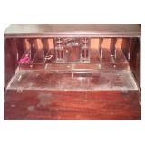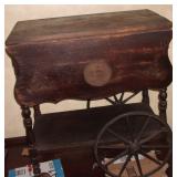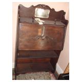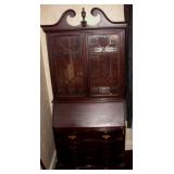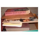 Very tidy estate in historic home. Lots of nice early furniture including fantastic gothic barley twist chair, secretary, 2 drop front desks, wicker patio pieces, china cabinet, gun cabinet, balloon back needlepoint chair, several chests and bureaus, king size sleigh bed, piano bench, library table, steamer trunk, tea cart, wood vanity, wicker trunk, chest, vanity, Plenty (about 100 pieces) of black americana books, photos & magazines, Capo-Di-Monte, costume jewelry, NJ Books, tools, vintage Christmas, depression & milk glass, 1950s cowboy print bunk board, silverplate, Metlach tureen, fantastic square panel stained glass light fixture, family bibles, WWI bugle, mirrors, fireplace screen, maps, fossils, arrowheads, oriental throw rug, 2nd edition Jungle Book, yearbooks, bookends, stemware, dinnerware, Christmas dishes, baker's rack, snowblower, small quad ATV, designer ladies' shoes, handbags, prints, household, ladies; spats, vintage license plates, tabletop victrola, crystal candlesticks, etc.