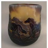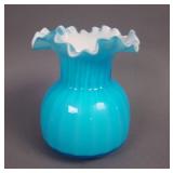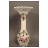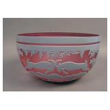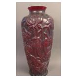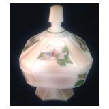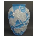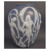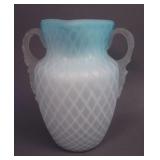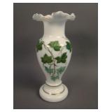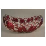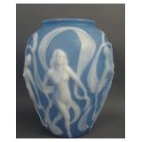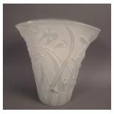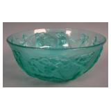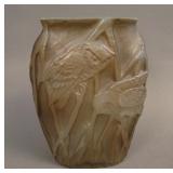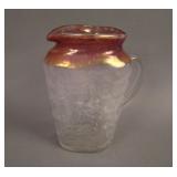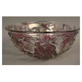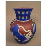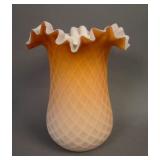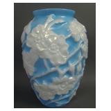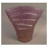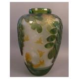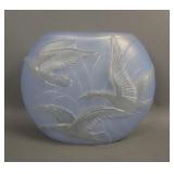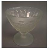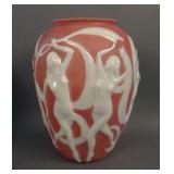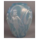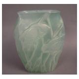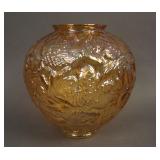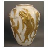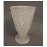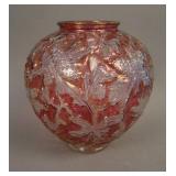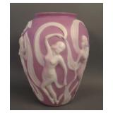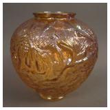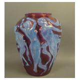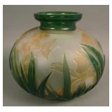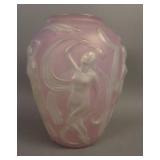 10% Buyers Premium (On the floor and absent/ web) 1 6 ¾” Tall Consolidated Catalonian Fan Vase – Amethyst Wash (scarce) 2 6” Tall Consolidated Catalonian Tri-Cornered Handled Pitcher – Cranberry Flash/ Crystal (scarce color) 3 4 ¼” Tall Consolidated Spanish Knobs Flared Vase – Cranberry Flash (scarce color) 4 4 3/8” Tall Consolidated Spanish Knobs Flared Vase – Cranberry Flash/ Crystal (scarce) 5 4” Tall Consolidated Catalonian Violet Pinched in Vase – Red (very desirable) 6 Pair Consolidated Catalonian Breakfast Open Sugar and Handled Creamer – Cranberry Flash (rare & desirable set) 7 6 ½” Tall x 8 ¾” Diam. Consolidated Catalonian “Top Hat” Shaped Vase – Crystal Green (nice color) 8 5 ½” Tall Consolidated #4112-C Regent Line 6 Ruffled Crimped Vase – Blue/ Cased (very scarce & very desirable) 9 10 1/8” Tall Consolidated Concora 6 Ruffled Crimped Vase w/ Ivy Decoration – Décor. Milk Glass (nice décor) 10 11 ¼” Tall Consolidated Pan Vase – Cranb. Flash/ Opal. (extremely rare color combination; really tough) 11 11 ½” Tall Consolidated Pan Vase – Cranb. Flash/ Crystal (very desirable color) 12 11 ½” Tall Consolidated Pan Vase – Custard/ Brown Stain (scarce; very desirable) 13 11 ½” Tall Consolidated Pan Vase – Custard/ Tri-Colored (very scarce; desirable) 14 11 ½” Tall Consolidated Pan Vase – Milk Glass/ Gold Décor. (shiny finish; some gold wear) 15 11 ½” Tall Consolidated Pan Vase –Milk Glass/ Green Décor. (bisque finish; very different decoration) 16 4 5/8” Consolidated Nudes ind. Round Berry Bowl – Crystal/ Frosted 17 4” Tall Consolidated Nudes Stemmed Round Sherbert – Crystal/ Frosted 18 5 ¼” Tall Consolidated Nudes ftd. Tumbler – Frosted Crystal 19 5 ¼” Tall Consolidated Nudes ftd. Tumbler – Crystal Stained 20 10” Consolidated Nudes Master Berry Bowl w/ Ormalu Trim – Crystal/ Frosted (very desirable; really nice item) 21 7 7/8” Consolidated Nudes Master Berry Bowl – Crystal Green/ Satiny (very scarce color; really nice) 22 8 5/16” Consolidated Nudes Flat Plate – Crystal Frosted (scarce) 23 Consolidated Nudes Handled Cup only – Crystal Green/ Satiny (scarce) 24 8 1/8” Consolidated Nudes Master Berry Bowl – Yellow Crystal/ Cased (drilled for a shade) 25 8 3/16” Consolidated Nudes Master Berry Bowl – Crystal/ Cranb. Stain (decoration is worn) 26 6 5/8” Tall Consolidated Catalonian Fan Vase – Amethyst Wash (scarce) 27 6” Tall Consolidated Regent Line Bulbous 2 Handled Pinched in Vase – Odd Blue Cased (very unusual color; neat shape) 28 12” Tall Consolidated Chrysanthemum Cylinder Vase – Red/ Satiny (5/8” chip on top edge; has “Martele” label) 29 12” Tall Consolidated Chrysanthemum Cylinder Vase – Red/ Satiny (5/8” chip on edge; very rare color) 30 11” Tall Consolidated Seagulls Lg. Pillow Vase – Red (extremely rare w/ great color; may have a tiny bruise on the edge) 31 11” Tall 1990 Kelsey/ Pilgrim 8/15 900716 Farm/ Pasture Scenic Vase – Green/ Yellow (nice large & attractive item) 32 11 ¾” Tall 1991 Kelsey/ Pilgrim 9/99 900927 Ladies with Birds w/ Wisteria Vase – Green/ Orange (very desirable; really nice) 33 6 ½” Tall 1991 Kelsey/ Pilgrim 1/10 900890 Floral Vase – Green/ Yellow (very attractive; nice colors) 34 4 ½” Tall 1996 Kelsey/ Pilgrim GS 3040 Morning Glory Squatty Vase – Green/ Frosted (scarce; nice) 35 11 ½” Tall Phoenix Dancing Ladies Vase – Lavender/ Milk Glass (very scarce & unusual color) 36 11 ½” Tall Phoenix Dancing Ladies Vase – Lt. Blue/ Milk Glass (very desirable; nice) 37 11 ½” Tall Phoenix Dancing Ladies Vase – Lt. Rose/ Crystal Frosted (very desirable; nice) 38 11 ½” Tall Phoenix Dancing Ladies Vase – Teal-Green/ Crystal Frosted (rare color combination/ unusual) 39 11 ½” Tall Pilgrim Dancing Ladies Vase – Crystal Green (scarce) 40 Consolidated Santa Maria Night Light & Stand – Crystal Frosted/ Decorated (very rare and very desirable) 41 8 ¼” Tall Consolidated Katydid Fan Vase – Amethyst Wash/ Crystal Frosted (scarce; nice) 42 8 ½” Tall Consolidated Katydid Fan Vase – Lt. Blue Wash/ Crystal Frosted (scarce; nice) 43 8 3/8” Tall Phoenix Freesia Fan Vase – White Wash/ Crystal Frosted (scarce) 44 8 ¼” Tall Consolidated Katydid Fan Vase – White Wash/Crystal Frosted (scarce) 45 14 ½ - 15” Long Consolidated Lovebirds Oval Banana Boat – Cranb. Flash/ Crystal (rare and desirable; a small bit of wear) 46 14” Phoenix Diving Girl Oval Banana Boat – Blue Shadow/ Milk Glass (rare & very desirable item) 47 14” Phoenix Diving Girl Oval Banana Boat – Tan/ Milk Glass (rare & very desirable; really nice) 48 14” Phoenix Diving Girl Oval Banana Boat – Crystal/ Frosted (very scarce; very desirable) 49 13 ½” Tall (Czech?) Archer Bulbous Vase on Metal Mount – Tan/ Moonstone (extremely desirable item; nice) 50 17 ¾” Consolidated Dancing Nymph Palace Platter – Green Wash/ Crystal (extremely rare & very desirable item) 51 17 ¾” Consolidated Dancing Nymph Palace Platter – Sepia (Brown)/ Crystal (extremely rare & very desirable) 52 17 ¾” Consolidated Dancing Nymph Palace Platter – Crystal/Frosted (rare and very desirable; rare) 53 16 ½” Consolidated Dancing Nymph Flared Palace Bowl – Crystal/Frosted w/ Colored Trim (rare and very desirable; nice) 54 10 1/8” Consolidated Dancing Nudes Flat Plate – Crystal/Frosted (scarce) 55 Pair 5 ½” Tall Consolidated Tropical Fish Domed Candlesticks – Amethyst Wash (very rare and very desirable; soooo tough!) 56 16 ¼” Consolidated Tropical Fish Lg. Flared Centerpiece Bowl – Amethyst Wash (rare and very desirable; great décor) 57 16” Consolidated Tropical Fish Lg. Flared Centerpiece Bowl – Amber Wash (rare and very desirable; really nice) 58 9 ½” Tall Phoenix Experimental Flying Geese Pillow Vase – Burnt Orange/ Milk Glass (etched “2227Q Gloss” on Base) 59 9 ½” Tall Phoenix Flying Gee