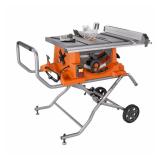 Ridgid R4513 15 Amp 10 in. Heavy-Duty Portable Table Saw with Stand. This RIDGID 15 Amp 10 in. Heavy Duty Portable Table Saw with Stand is equipped with a 4000 RPM motor. It features an updated table saw utility vehicle that provides single-point release for simple 1-step setup and great job site portability. You can easily complete jobs with this saw's user-friendly onboard storage for your miter gauge, extra blades, rip fence and other accessories. Ability to rip through 4 in. x 4 in. material in a single pass for fast, accurate cuts. Front and back clamping fence which features integrated T-slots that give ability to hold select accessories. Maximum cut depth of 2-1/4 in. at 45 Degrees and 3-1/2 in. at 90 Degrees for a variety of useful cuts. Note: This is an out of the box item. It is very clean and looks Brand New! We power tested and it Powers up! See 2nd - 4th photos for actual item!!!! Retail $499.00. (83) |