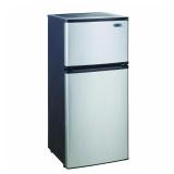 Magic Chef HVDR430SE 4.3 cu. ft. Mini Refrigerator in Stainless Look. Whether you're college-bound or simply want a little extra refrigerator space in your home or office, the Magic Chef 2 Door, 4.3 cu. ft. Energy Star Compact Refrigerator has the storage options you're looking for. A can dispenser conveniently keeps soda in the door while additional door shelves provide space for other frequently used items. Glass refrigerator shelves keep foods organized and are easy to clean. The separate freezer compartment provides additional storage for frozen foods. 2 reversible doors offer multiple options for placement in a room. Height to Top of Refrigerator (in.): 43.3 in. Depth (Including Handles): 20 in. Refrigerator Width (In.): 19. In original box. Retail $229.00. (45) |