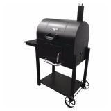 Kingsford CG2240501-KF Lone Star Charcoal Grill, Black. The Kingsford Lone Star Charcoal Grill has a total cooking area of 593 sq. in. and grills up to 24 hamburgers at a time. Durable construction provides season after season of cooking performance. Folding side shelf provides extra workplace for large platters. The main cooking grates are cast iron and the warming rack is chrome plated. Charcoal grate can be positioned in three different levels for longer burn times. The handy front charcoal access door allows for easy refueling. Extra-large removable ash tray helps with quick and easy clean up. Smokestack with adjustable damper and two adjustable side air vent provides maximum heat control. All steel wagon wheels for easy transportation. In original box. Retail $79.00. |