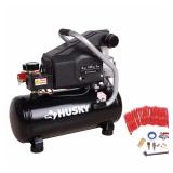 Husky BS1004W 4 Gal. Oil Free Air Compressor, Black. The 1 HP 4 Gal. oil free air compressor comes with various air compressor accessories, to help you with a variety of projects. All fittings are with 1/4 in. NPT connects. The kit has an air blow gun that can be used for cleaning. Included nozzle and needles for inflation application. Maximum pressure: 135 psi. In original box. Retail $129.99. |