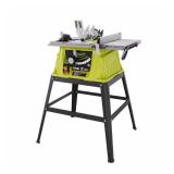 Roybi RTS10G 15 Amp 10 in. Table Saw with Steel Stand, Green. The Ryobi 10 in. 15 Amp Table Saw includes a durable steel stand and is lightweight and easy to use, making it a great addition to any tool collection. Powered by a 15 Amp motor, it can generate up to 5000 RPM for powerful cutting and the 25 in. x 17 in. table provides support for large ripping operations. The saw also features an adjustable miter gauge for accurate cross cutting. In original box. Retail $129.00. |