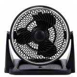 T.H.D. FT-810S High Velocity 9 in. Tabletop Fan, Black. Increase airflow in your home or office with the HDX High Velocity 9 in. Tabletop Fan. Three speeds let you customize the airflow as needed, while the 3-wing PP turbine blades deliver powerful air volume. The head pivots 90 Degree for flexible air direction, and the compact design can even be mounted to the wall to save space. Suitable for placement on a range of surfaces, the fan also features slip-resistant feet and a cushion on the base to help protect furniture. In original box. Retail $14.96. |