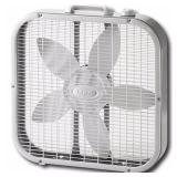 Lasko B20201 20 in. Box Fan, White. Product Overview 20 in. 3-Speed Box Fan combines the cooling power of 3 fan speeds with the wide-area air flow of 2,500 CFM air circulation and a 20 in. fan diameter, all in a compact, lightweight, energy-efficient design. The 6 ft. cord and slip-resistant feet allow flexible placement without fan slippage and the built-in carry handle makes it easy to transport the fan between rooms. The plastic material provides reliable strength and durability. In original box. Retail $14.96. |