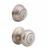 Kwikset 991J15 SMT CPK4 Juno Satin Nickel Exterior Entry Knob and Single Cylinder Deadbolt Combo Pack Featuring SmartKey, 93573. Step up to designer styles and superior security with Kwikset signature series products. Juno's elegant, traditional style blends perfectly with most design styles. The 980 deadbolt is both tough and attractive. The crisp, clean appearance of the Satin Nickel finish adds to the overall look of the product and brings a modern feel. The Combo pack provides 2 locking points-keyed entry and a deadbolt. SmartKey Re-key Technology allows you to control who has access to your home. Re-key the lock yourself in seconds in 3 easy steps. Have you recently moved or had a child lose a key. It's time to re-key. SmartKey provides the highest level of residential security and features BumpGuard to protect against lock bumping.In the original box. Retail $49.92. |