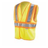 3M High-Visibility Yellow 2-Tone Reflective Construction Safety Vest. 3M ANSI Class 2, 2-Tone Safety Vest is required for workers on sites around traffic going 25 MPH or higher and workers around heavy equipment. It is designed for moderate risk: construction, utility, school crossing, parking lots, traffic direction. 3M ANSI Class 2, 2-Tone Safety Vest is designed in fluorescent yellow with contrasting fluorescent trim and 2 in. 3M Scotchlite Reflective Material. One Size Fits Most.In plastic. Retail $24.99. |