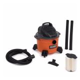 RIDGID WD0670 6 gal. 3.5-Peak HP Wet Dry Vac. The RIDGID 6 gallon high performance wet dry vac is designed for DIYers who want a compact shop vac that delivers the powerful performance and rugged durability required for jobsite clean-up. This vacuum has a 6 gallon drum size that results in a more compact design that requires less storage space on a service truck or in a work shop or garage. And its top carry handle makes transporting easier than ever. It features the patented QwikLock Filter Fastening System that makes installing or removing your filter quick, easy and secure. In the original box. Retail $49.97. |
