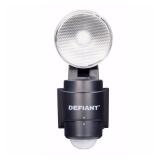 Defiant DFI5939-BK 180 Degree 1-Head Black LED Motion Sensing Battery Power Outdoor Flood Light, Black. This LED battery powered light provides 200 Lumens light output. No wiring required and perfect for sheds, fences, etc. Never change a bulb with LED technology. 3-easy steps to install. For wall mount applications only. Adjustable on-time, lux level, and range, the lux allows the light to operate during the day or night, light can be set to stay on for 10-seconds after all motion is stopped. 3 "C" batteries required not included. Operating temperature range: -25°C (-13°F) to +50°C (+120°F). In original packaging. Retail $29.97. |