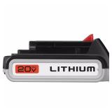 BLACK+DECKER LBXR20 20-Volt Max Lithium-Ion Battery. Ensure your 20 volt cordless BLACK+DECKER tools or outdoor power devices have a backup power source with this lightweight lithium-ion battery. This unit resists drainage and retains its charge when not in use, so it's ready to go even after long periods of inactivity. Give your equipment a jolt with a chemically-advanced battery that is superior to NiCd in performance and endurance. In original packaging. Retail $49.97. |