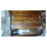 * Carved Walnut Clock Shelf * Antique Concert Roller Organ Circa 1885 With 11 Music Cobs *