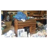 * Antique Oak Wall Telephone w/Crank *Oak Side Table * Oak C-Roll Roll Top Desk * Bell Ships Clock