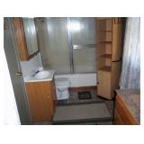 Samsung auto waher, Hot Point dryer (both like new), 30” electric range, refrigerator (like new), dinette set, 2 twin beds, couch, chest, Hoveround electric wheel chair.