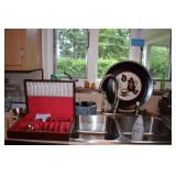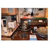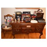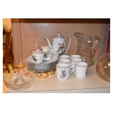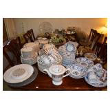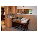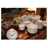 Orrefors, Pewabic Pottery, Baldwin Candlesticks, China Cabinet, Queen Anne style Buffet, Collection of Waterford Crystal, Silver Candlesticks, Kosta Boda Vitivr Holder, Johnson Brothers China Set, Pickard China Set, Traditional Wood Dining Table w/5 Chairs w/Needlepoint Seats, Retro Glass Grapes, Crystal Decanters, Hand-painted Japanese Tea Set, Wooden Bar Cart, Autumn Leaf China Set, Toastmaster Broiler, Bareuther German Coffee Cake Set, Tea Kettle, Wooden Table & Chairs, Cusinart Food Processor, Vintage Osterizer Blender, Retro Canisters, Cusinart Toaster, Copenhagen Porcelain, Glassware, Oneida Flatward Set, Assorted Pantry Items, Tramotina Knives, Assorted Kitchen Utensils, Smoky Glassware Set, Citrus Juicer, Abalone Placemats