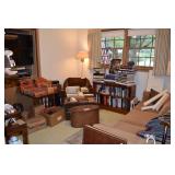 Chair & Ottoman, Stamp Collections, First Edition Stamps, Embossed Stationary, Wooden Bookshelf, Wooden Table, Visio Flatscreen, Books, Pewabic Pottety, Cherub, Child's Wooden Chair, Traditional End Table, PaperShredder, Brass Decorative Decor, Insignia Speakers, Oriental- style Runners and Rugs, Karpen Wide Wale Sofa, Longerberger Baskets