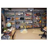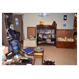 Wabash Colonial style Bookshelf/Dresser, Folding Table, Pillows & Bedding, Office Swivel Chair, Tray Tables, Vintage Bpard Games, Vintage Books, Vintage Toys, Desk, Globe, Russell Wright Dishes, Vases, Wooden Salad Bowl Set, Typewriter, Carved Wooden Desk, Mid-century Modern Wioden Setving Sets, Huge Brandy Snifter, Mid- century Modern Coffee Table, Tools, Hand Tools, Planters, Hoover Vacuum, Tacks of Clothing. Pantry filled with Food, Huge Closet of Clothes, Assorted Cleansers, Wheelchair & Walker, Sewing Table, Step Ladders