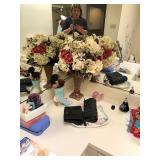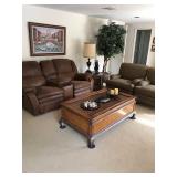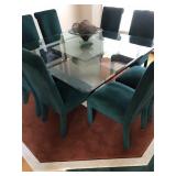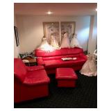 Loaded! Square glass dining room table with 8 upholstered chairs, chaise, theater style recliners, white sofa, console & mirror, sofa, armchairs & ottoman, kitset, hall tree, master bedroom set, side tables, cherry red leather sofa, chair, lots decorative accent pieces, beautiful outdoor table with 8 chairs and umbrella, lounges, BBQ, clothes, furs, bags, china, perfume, kitware, bric-a-brac & more |