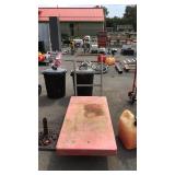 August 14 2017 1 Early Coleman cooler, red metal outer in overall nice looking shape 2 Pet kennel Cage has the plastic tray in bottom but has a crack, 28 x 42 x 31" high 3 Nice fireplace screen, trifold footed neat home decor design piece 4 Schwinn Ranger, ladies bike, nice color and overall nice shape 5 Two kids folding chairs with the storage bags, one pink, one green and both have the flip over hood tops 8 Group with beach umbrella, Coleman 6 person camping tent 9 Group of misc tents and parts, 2 person done tent, plus other tent tops, etc misc group of what we have 10 Versa ladder folding ladder makes A frame type or folds to various positions 11 Skid lot group of tools, miter saw, tile cutter, drill, dovetail jug, plus lots more, shop vac needs hoses though 12 Chaise lounge patio or poolside type, used but still very usable guys 13 Chaise lounge folding chair, recliner type in nice condition 17 Scott's 3000 fertilizer drop spreader with poly hopper, and hand held seeder 18 Coleman extreme cooler but note it is missing the wheels just need to carry this one 21 Patio Table Set, glass top table having 5 armed chairs, aluminum framed with mesh fabric seating 22 Nice Patio Table Set, 60" round glass top table and 4 armed chairs with 2swivel rockers and 2 being spring rocker type, nice white framed clean table set here folks 23 Craftsman tool chest and cabinet, top box with 4 drawers, base cabinet with 5 total drawers, shows a little use but really not bad here guys 26 Flowerpot lot, two Styrofoam, one pottery, one metal wall hanging pot 27 Coleman max ultimate comfort chair 400 pound rating folds up and has carry bag 28 Coleman max ultimate comfort chair 400 pound rating folds up and has carry bag 33 Nexgrill propane gas barbecue grill four Burners plus side Burner, inside grates are rusted, seller code I5 40 Metal storage cabinet does have some dents and rust on it measures 24 inches wide by 12" x 64" tall 41 Metal storage locker, no key, measures 18 inches wide by 21 inches deep by 80 inches tall 44 Remington plastic dog crate, measures 17 inches wide by 27 inches deep by 18 directions tall 45 Pet mate pet taxi measures 14 inches wide 23 inches long 12 inches tall 48 Black plastic shelf, unassembled measures 36 inches wide 23 inches deep 70 inches tall 49 Black plastic storage shelf, measures 36 inches wide 17 1/2 inches deep by 70 inches tall 56 58 Two drawer file cabinet by global for letter or legal size, measures 36 inches long 1827 inches tall 59 Three southern patio high density resin planters15 inch 66 Skid lot with Rubbermaid toolbox and hand tools, car buffer, stackable totes filled with hardware, tote with Skil saw and vacuum cleaner and other hardware 67 Skid with turkey decoys, Plano tackle box and contents including fishing reels and lures 68 Skid with miscellaneous tiles, weed and grass killer sprayer, life vest 73 Pair of aluminum ramps, 750 pound load, these fold in sections for easier storage 89 Huffy kids bike, Disney bike with training wheels and safety helmet 95 Bike, Schwinn impact men's bike shows normal use ware but still very ride able 102 Tool lot, 12ft aluminum extension pole, paint roller, 3 aluminum extend a brush poles 104 Chimney cleaning brush, but wait the handle is made of copper tubing pipe that threads together in sections, valuable for the copper as it is just saying 105 Tool lot, 2 poly scoop shovels, dirt shovel, garden rake, 2 dirt shovels, all used but still will work at least when you do 106 Splitting maul with yellow poly handle, plus 2 splitting mauls 107 108 Tool lot, grass whip, poly snow shovel, leaf rake, electric hedge clippers, and a nail pry bar 109 Stainless kitchen type trash can foot pedal operated lid 112 BowflexXLT weight system, with bench and leg curl bar attachment, nice shape 113 Char-Broil propane grill, stainless 4 burner needs a burner, and igniter button replaced by the way 117 Craftsman hand dolly, older but solid made still very workable hand cart 118 5pc wrought iron patio set, 48" round top table with 4 armed chairs, needs some paint touch up but in nice solid usable condition guys 119 124 Two red folding camping/sports type chairs with the storage bags, both like new condition 125 Garden Works gardening stool with the canvas tool organizer pouch 126 Big home decor type bird feeder stainless tray with 2 feed bowls on a floor stand 127 Group lot, hanging moss planter basket, bamboo planter pit, water sprinkler, tow rope, and a few ceramic house planters 128 22ft aluminum extension ladder, used by painter but still good ladder guys 129 Malibu Adirondack Chair white painted and nice shape, plus a baja beach umbrella still has the tags on it 130 5 gallon poly gas can, missing the nozzle cap, and the vent cap 131 Warehouse cart, has a fiberglass work plate on metal handled cart, 24 X 48" by Rubber maid nice usable cart here 132 Cast iron patio umbrella stand, note the tension tightening screw knob is missing 134 Home Patio Lawn Swing, the A frame type with the swing seat, cushion needs cleaned no canopy top but swing still very usable, seller code MH 135 Winery Cellar Vats/Barrel Stands, these are made of 4" channel aluminum and on small caster wheels, designed to be bolted to the floor, 89 x 81" in size, the back holding brackets are 24" high, and taper down to the front brackets to 10" high, professional made 136 Winery Cellar Vats/Barrel Stands, these are made of 4" channel aluminum and on small caster wheels, designed to be bolted to the floor, 89 x 81" in size, the back holding brackets are 24" high, and taper down to the front brackets to 10" high, professional made 137 Winery Cellar Vats/Barrel Stands, these are made of 4" channel aluminum and on small caster wheels, designed to be bolted to the floor, 89 x 81" in size, the back holding brackets are 24" high, and taper down to the front brackets to 10" high, professional made 139 Concrete Chinese lantern outdoor garden decor piece, breaks down into 4 sections for easi