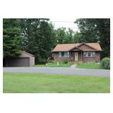 3 Bedrooms, 2 Full Baths 0.8 +/- Acre Lot Hard Wood Floors & Newer Carpet Central Heat and Air Conditioning Kitchen opens to Large Living Room with Cathedral Ceiling Large Heated and Cooled Sun Room w/ Tiled Floor Master Bedroom with Cathedral Ceilings Master Bath has Built-In Closet and Private Toilet Newer Roof Utility Room Full Unfinished Basement with Sealed Floors Basement Opens to Outdoor Area – Perfect for Deck or Patio Detached 2 Car Garage with Work Space
