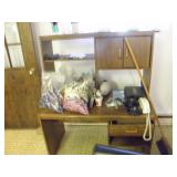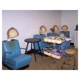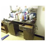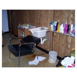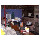 Contents of this imaculent home include: mahogany dining room table with 1 leaf/ pads, fancy shield back chairs, and buffet. There is an entire beauty shop in the basemwnt with hydrolic chairs, hair dryer chairs, and other related items, small freezer, small refrigerator, washer/dryer, lawn and garden tools, linens, house hold items, sofas, chairs, tables, lamps, wall decor, costume jewelry, holiday items and much more!