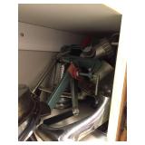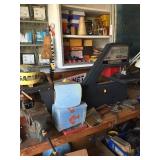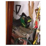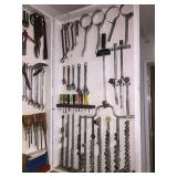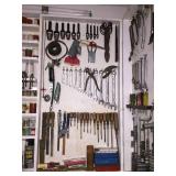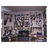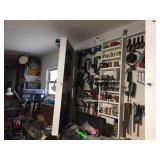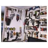 Garage is packed with quality power and hand tools. Woodworking supplies. Clean and organized workshop.