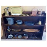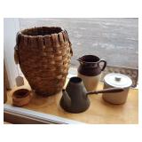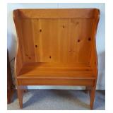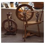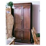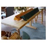 Furniture (most US made): New Johnston Benchworks Chair +1/2, Pr Hickory Leather mid-century chairs, vintage Safari chair with original canvas sling by the Gold Medal Co, Reed chair, New - Nichols & Stone lighted china cabinet, book shelves,