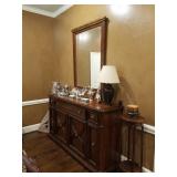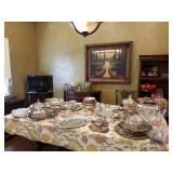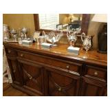 FANTASTIC STANLEY FURNITURE BUFFET MATCHING DINING TABLE BASSETT CHINA CABINET / CURIO ORIGINAL ART BEAUTIFUL SCRAPED WOOD CABINET PICTURE FRAMES BARKER ELLIS ITEMS TEA SERVICE LINENS ....AND A LOT MORE |
