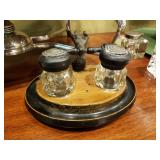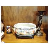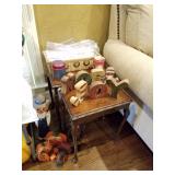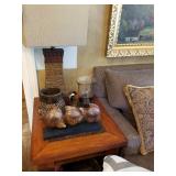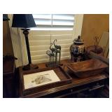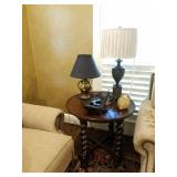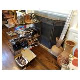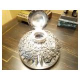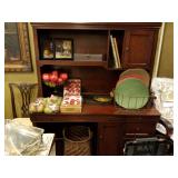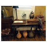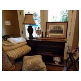 ANTIQUE INKWELLS (MANY ARE FROM 19C ENGLAND, STERLING, SOME BRASS, SOME OLDER AND MADE OF WOOD ETHAN ALLEN DESK AND COMPANION PIECES OF FURNITURE CHINESE PLATES STAFFORDSHIRE DOGS CANDLEHOLDERS CHRISTMAS IRON FIREPLACE SCREEN DESIGNER MAYO UPHOLSTERED SOFA AND MATCHING CHAIR GORGEOUS TABLES CREDENZAS BARLEY TWIST COFFEE TABLE AND MATCHING END TABLE AREA RUGS