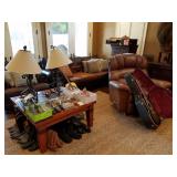 BERNHARDT LEATHER SOFA AND MATCHING CHAIR LA-Z-BOY LEATHER RECLINER SLEEPER SOFA BROYHILL NIGHT STANDS GUITARS *FENDER STRATOCASTER *FENDER ACOUSTIC *UNION ACOUSTIC DESIGNER SHOES AREA RUGS ORIGINAL ART DUCK DECOYS SCULPTURE IRON FIREPLACE SCREENS BOOKS VIDEO GAMES LAMPS PRINTS GOOD THROW PILLOWS ASIAN POTTERY ASIAN DECOR