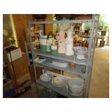 Complete Arsberg China Set Many Old Christmas Items Old Wooden and Metal Shelving Low Antique Dresser Cigar Boxes Vintage Ski's Modern Ski's Clay and Other Pottery Supplies Plants Vintage Trunk Wooden Wine Boxes Greeting Cards Antique Glass Display Cabinet Pots, Pans, Glassware Hoover Vacuum