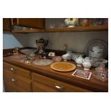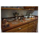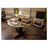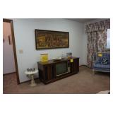 Two recliners; several marble-topped and -inlay side and coffee tables; media cabinet; wall shelves; TV/Radio/Record player console; two French Provincial arm chairs; large sofa; Mid-Century Modern lamps; china cabinet; Troy Built mower; bar stools; office chairs; rolling carts; bookshelf; storage cabinets; Collectibles: Silver-plate items; Milk glass; Carnival glass; Famous OK Indians glass set and plates; cut glassware; ‘Spring Garden’ china; oil paintings; Smith-Corona typewriter Misc.: Nice Mid-Century Modern and other vintage décor; nice kitchenware; nice hand, power, and yard tools; shredder; vacuum; microwave; cleaning supplies; food; Oxygen tank Pricing Structure: Saturday 9:00 am to 1:00 pm is full price Saturday 1:00 pm to 3:00 pm is 25% off ____________ Sunday 1:00 pm to 4:00 pm is 50% off