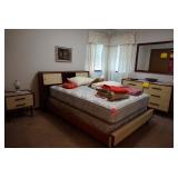 From 63rd and Broadway Extension, head east on 63rd. There is construction on Braniff Drive, so please take 63rd to N. Wildwood Drive and follow the road up to 60th, then over on 60th to house. Follow our signs to sale. Large: Vintage Admiral TV; Mid-Century Modern bedroom suite, including a bedframe, dresser, and two nightstands; Maytag Centennial washer and Dryer; rustic chest-of-drawers and nightstand; queen and full mattress; queen iron bedframe; two desks;