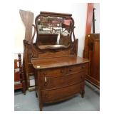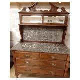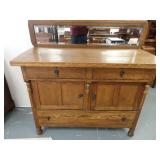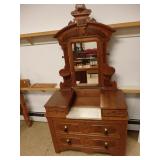 Mixed woods shelf with towel bar and mirror. 23”t, 15w.