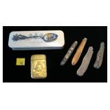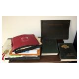 Any items left after the specified load out date will be considered forfeited. We will not be offering any additional load out dates or times. It will be the buyer's responsibility to dismantle & disconnect any and all equipment. Please bring your own packing materials, labor, tools & moving equipment. 2 23" Victorian Walnut shelf clock, with mercury pendulum and alarm, running 3 39.5" H.A. Clums agricultural barometer, Clifton Springs, N.Y. pat. May 29, 1860; walnut, working (39.5" T x 8.5" W.) 4 Hammond's 16" physical globe; floor model with mahogany Duncan Phyfe style pedestal stand 5 Victorian marble top pedestal stand, walnut, 30" W. x 22" D. x 30" H 6 Victorian marble top pedestal stand, walnut, 28" W. x 20" D. x 29" H. 7 Brass and iron electrified oil lamp with hand painted shade, 17" H. 8 18" x 24" Japanese wood block print signed Kiyoshi Saito "Gion in Kyoto" signed and numbered 52/200 1961, framed and matted 9 Early copper water kettle with lid stamped 2" 16" W. x 9" x 13" H. 10 Vintage trunk with tray and glass top (30" W. x 16.5" D. x 10" H.) 11 Cherry and birdseye maple 1-drawer stand with turned legs ca. 1850 (20" W. x 18" D. x 29.25" H.) 12 13 47" Oak curved glass china cabinet, carved with full columns and claw and ball feet. (71" H.) 14 Crotch mahogany OG type mirror 30" x 46" 15 Pair of metal art nouveau figural double candle sticks; 18" H. 17 Vintage iron and brass balance scale, No. 4 Newark Scale Works, Newark N.J. with set of brass weights (14" x 6" H.) 18 45" Round Walnut 5 leg extension table with 5- 17" leaf and turned spool legs. 20 Vintage mahogany buffet/ sideboard (66" W. x 21" D. x 38" H.) 25 Early shaker type slat back rocker with splint seat 30 Vintage 2 piece majolica type jardiniere with pedestal base 31 Brown stoneware batter pitcher, 12.25" H. 33 70 piece sterling flatware set; 6 piece service for 12 with serving pieces, Wallace and Sons "Antique" with W monogram. includes: * 18 teaspoons * 12 salad/ dessert forks * 12 dinner forks, 12 dinner knives 34 Sterling silver baby spoon and fork, monogrammed D.H.U. 37 Lot, 18K and 14K gold: 2-18K gold bands, 14K Bulova watch; 2-14K bands, 14K buckle pin and 14K clasp 39 Cameo and photo locket of Rev. Samuel S. Utter, belonging to his wife 40 Elgin Hunter Case pocket watch (marked 14K warranted) with watch chain, watch bought by Rev. Samuel S. Utter with marriage fels and given to his daughter Grace 41 Lot, jewelry including beads from Palestine; 5 blazer pins, Vassar Collage pin, gold thimble and miscellaneous 42 Lot, Victorian jewlery, gold beads, U.S. Marine Corps honorable discharge pin, Masonic pin and N.Y. Farm Bureau pin 43 Lot, jewlery, sterling spoons and fork, beaded campfire headband, Victorian purse and 1918 Montclair High School memorial medal 45 Lot, Victorian hair watch chain and bracelet, from the hair of Mary Utter, sister of the Rev. Samuel S. Utter 46 Lot, 4 Victorian-era knives, Bermuda match safe and enameled souviner spoon 47 Lot, 2 folding rules Stanley No. 36 1/2 & 36 and miniature lighter, 4 pcs. 48 Lot, 2 Guttapercha photo cases with 1866 postmortum of child and man 49 Lot, 4 dags and ambrotypes including one of Samuel S. Utter and A.F. Payne 53 Lot, jewlery and coins including a 1949 Canadian silver dollar 55 Lot, tea tins and Roadside Craftsman, East Bloomfield, NY game 56 Pair 10" sterling silver candle stick, with paper "From Geo Gould 1928" 59 12-Coin Silver tea spoons - Harris, Stainwood & Co Boston Ca. 1845 67 24" x 18" signed and numbered Zao Wou-ki, no. 26/75, "Aquatint" from the Schuman gallery, Rochester, New York. Framed and matted. 68 14" x 20" photograph by Clyde Butcher "Loop Road #3" numbered edition- signed and numbered 10/200 . Framed and matted 69 22" x 17" Colored Victorian print,"Spring Beauty" in Victorian walnut frame. 70 Early Cornucopia flask, half pint, Conn. Glass works, ca. 1945 71 Quill and bark indian covered box, 7" square 73 Contents of china cabinet- 5 shelves include: set of 6 signed Fostoria crystal goblets, crystal, cut glass, early pattern glass, porcelain, pottery and misc. 77 26" oak finish TV/printer stand on wheels includes office supplies 80 44" Oak 2-door book case (58"H.) 82 Vintage newly upholstered armchair with rolling ottoman 91 Mahogany 4-drawer highboy, 29.5" W. x 19" D. x 43" H. 92 95 Contents of book shelf- 5 shelf's over 100 books * Book Shelf NOT included. 96 Contents of book shelf- 14 shelf's over 200 books including history, war, art, bird and wild life, antique reference music and more! 99 Lot, 3- plastic Sterilite 105 Qt. bins with lids includes linens, doilies and blankets 102 Vintage Cornell University class of 1955 Woman's Wool Blazer 102 Lot of vintage Cornell University books, scrapbook diploma, photos, silk scarf, and year books 105 12'7" Epic Recreational GP Kayak with paddle, 2 covers, water proof bag, Thule Car rack system and Takima EVen Keel supports 108 Lot, woman's bike helmet, 2 air pumps, bike bags and accessories 109 Lot, Gardening tools and planters assorted tools, storage drawers, lawn chair and misc. 110 5 shelf plastic shelving unit, includes Coleman camp stove, lanterns, folding camp chairs, tarps, like new badmittin set in carry case and more misc. outdoor accessories. 113 Lot, Sleeping bags, backpacks, and rain gear Wilson Profile 2.7si graphite tennis racket, American flag 114 Contents of Kitchen cabinets: 7 cabinets include: Porcelain, sterling weighted compote, glassware, small kitchen appliances, pots and pans, pyrex, utensils and much more! 116 Lot, contents of closet include: New Verizon 4G mobile hotspot, post cards, silver plate, extension cords, sewing supplies, DC/Radio, and misc. collectibles and household goods. 117 Large lot of books, mostly vintage, and records: includes: Godey's Lady's books, large collection of Shakespeare books, Impressions by Burt Hubbard, bibles, Mark Twain and more! 118 4 volume gilt set; Character Sketches, by E. Cobham Brewer LL.D.; Selmar Hess Publisher 1902 119 Lot,
