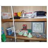 Small Sampling of What is in this Sale Kitchen Table & Chairs ~ Curios ~ Dropleaf Coffee & Side Tables Washer, Dryer, Fridge & Minifridge Martin Cast Iron ~ Pyrex ~ Tupperware ~ Star Trek & Flintstone Glasses Shades Crest Stoneware ~ Blue Ridge ~ White Hobnob Glassware ~ Carnival Bulova Solid Oak Wall Clock ~ Sessions Mantle Clock Martha Stewart Folding Chairs ~ Patio Chairs ~ Ladderback Tackle & Fishing Gear ~ Sears Trolling Motor ~ Anchors There will be Jewelry & Knives