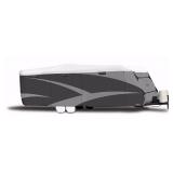 ADCO 34847 Designer Series Gray/White 34' 1" - 37' DuPont Tyvek Travel Trailer Cover. Slip-Seam strapping system cinches at the top and bottom for a perfectly snug fit and prevents cover from wind damage; Reinforcements throughout bottom and top of side panels Water resistant but breathable; Tyvek RV top panel reflects sunlight, keeping RV cooler; Designer polypropylene sides Weighted buckle toss under for easy installation underneath the coach; Lapper cap reduces wear over ladder area Durable polypropylene grey side walls, 4 travel tire guards included with every cover The most durable All Climate Travel Trailer cover on the market; Fits 34'1" - 37' Item is in damaged retail packaging! Retail $427.99 (72) |