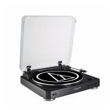 Audio Technica AT-LP60BK Fully Automatic Belt-Drive Stereo Turntable, Black. Fully automatic operation 2 speed turntable - 33 1/3 and 45 RPM Anti-resonance, die-cast aluminum platter Built-in switchable phono pre-amplifier with RCA output cables to connect to audio systems and powered speakers Integral Dual Magnet phono cartridge with replaceable diamond stylus Item is in retail packaging! Retail $99.00 |