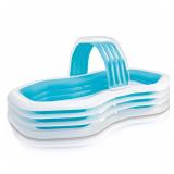 Intex Family Cabana Swim Center Pool, 122" x 74" x 51", for Ages 3+. Built-in bench and removable shade transforms this kids pool into a shaded oasis for parents to supervise in Features a built-in water sprayer that attaches to a garden hose Includes a Repair Patch and Drain Plug Capacity: 10-7/8" of wall height: 185gal Dimensions: 122" x 74" x 51", Constructed from durable 13 gauge vinyl Item is in retail packaging! Retail $42.09 |
