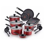 T-fal B165SI Initiatives Nonstick Inside and Out Dishwasher Safe 18-Piece Cookware Set, Red. Easy non-stick 18pc set includes every piece for your everyday meals. Exceptionally durable dishwasher safe cookware for easy clean up. Durable non-stick interior for easy cleaning and cooking. Ergonomic comfortable grip. Oven safe up to 350.F/177.C Features the patented Thermo-Spot, a unique heat indicator that shows when the pan is perfectly preheated. Item is in factory carton! Retail $66.95 |