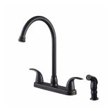 Ultra UF21045 Two-Handle Oil Rubbed Bronze Kitchen Faucet. Kitchen faucet Side spray with matching finish spray head Hybrid waterway Ceramic disc cartridges Maximum flow rate of 2.2 GPM at 60 psi Item is in retail packaging! Retail $51.99 |