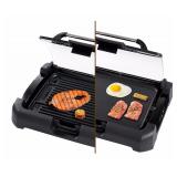 Secura GR-1503XL 1700W Electric Grill Griddle Reversible 2 in 1 Countertop BBQ grill w/ Glass Lid for Indoor Outdoor. The reversible, non-stick cooking plate measures 15.5"X11.5", about 180 square inches super large cooking surface saves you cooking time and easy to move food around while you BBQ Removable heavy duty Tri-Ply cooking plate with heating element sandwiched between grill plate and griddle plate. Grill and griddle 2-In-1, saves your cabinet space Removable glass lid prevents splatter and retains heat while (Extra moisture vents from sides keeping food crispy) while you barbecue Cool-touch handles and housing. Removable adjustable thermostat control. Heating indicator light. Product measurements: 20-1/4 Grease channels help drain excess oils and fats away and collect at drip tray. The drip tray is removable and disassembles easily for cleaning Item is in damaged factory carton! Retail $67.98 |