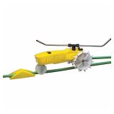 Nelson Raintrain Traveling Sprinkler. Cast-iron body with chip resistant, powder-coat paint Coverage up to 13,500 square feet Travels up to 200 feet Adjustable aluminum spray arms provide coverage range from 15 feet to 55 feet in diameter Automatic shut-off Can travel up to 200 feet and cover as much as 13,500 square feet Long lasting Cast-iron body Item is in retail packaging! Retail $67.34 |