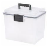 IRIS 19 Quart Portable WEATHERTIGHT File Box, Clear. Secure weather tight seal for maximum protection Holds letter size Hanging files Dimensions: 10.43L x 13.80W x 11.81H Heavy duty, reinforced lid design Sturdy front latch with business card holder Item is in retail packaging! Retail $19.98 |