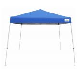 Caravan Canopy V-Series 2 Slant Leg 12 X 12 Foot Canopy Kit, Blue. Fully assembled slant leg pop-up canopy with cathedral style steel frame for maximum head room Durable 150D polyester canopy top provides 81 square feet of shade with 99% UV protection and is water resistant Soft press slider brackets and 3 leg height settings - peak height: 9' 1" and max valance clearance 6' 5" Sturdy, high grade steel frame with white powder-coated finish to prevent rust, corrosion, peeling, or chipping Includes 420D roller bag, 4 stakes Item is in damaged retail packaging! Retail $84.99 |