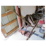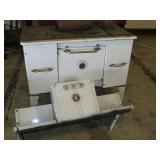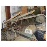 Home Comfort white porcelain cast-iron cook stove over 100 years old; antique cabinet; antique skillets; ice tongs; 3 iron pots; lard press; 10 stone jugs; #10 Uhl crock; old fire hose nozzles; milk crate; 3 milk cans; glass scrub board; 10 antique oil cans; antique lanterns; buck saw; antique saw; several chicken feeders; 3 horse collars; lots of horse harnesses; single tree; plow shear; hook pulley; wooden keg; 3 hand scythes; 2 antique hoes; antique jack; old pay phone; Whirlpool side-by-side black refrigerator/freezer w/ water/ice in door; Maytag 22.5 cu. ft. refrig./top freezer; Emerson microwave; Whirlpool 30" black glass-top stove; Whirlpool dryer; 4 TVs (Quasar, Zenith, 32" Element flat-screen HDTV w/ wall mount, etc.); Magnavox DVD player; DVD rack; TV cabinet; Blue River maple cabinet; cabinet; bookcase; small bookcase; buffet; dining table; curio table; glass table; 3 coffee tables; end table; 4 tables; metal table top; computer desk; desk; queen-size water bed; full-size bed; air mattress; 3 sofas; recliner; upholstered rocker; 2 padded chairs; 4 metal folding chairs; 6 lawn chairs & cushions; patio furniture; 4 chairs; 3 fold-out chairs; 2 wood benches; wooden swing; stereo tower w/ stereo; fish tank & supplies.