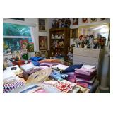 Also (most of the following are all in huge quantities): Huskylock Serger; large volume sewing notions, thread cabinet, knitting, crochet, etc. Mud men, animal and other small figurines BB guns Collector plates; Princess Di sterling plaque Circus and marine-themed figurines, art Linens, area rugs Electronics, large flat-screen TV, CDs, DVDs, Kitchen: small appliances, utensils, cookware; gold-tone flatware Household products, toiletries Jewelry Clothing, shoes, hats, accessories Some Lenox, Waterford, Murano, Lladro Books, office supplies, printers